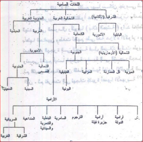وهذا رسم تخطيطي للغات السامية وفروعها[4]:
